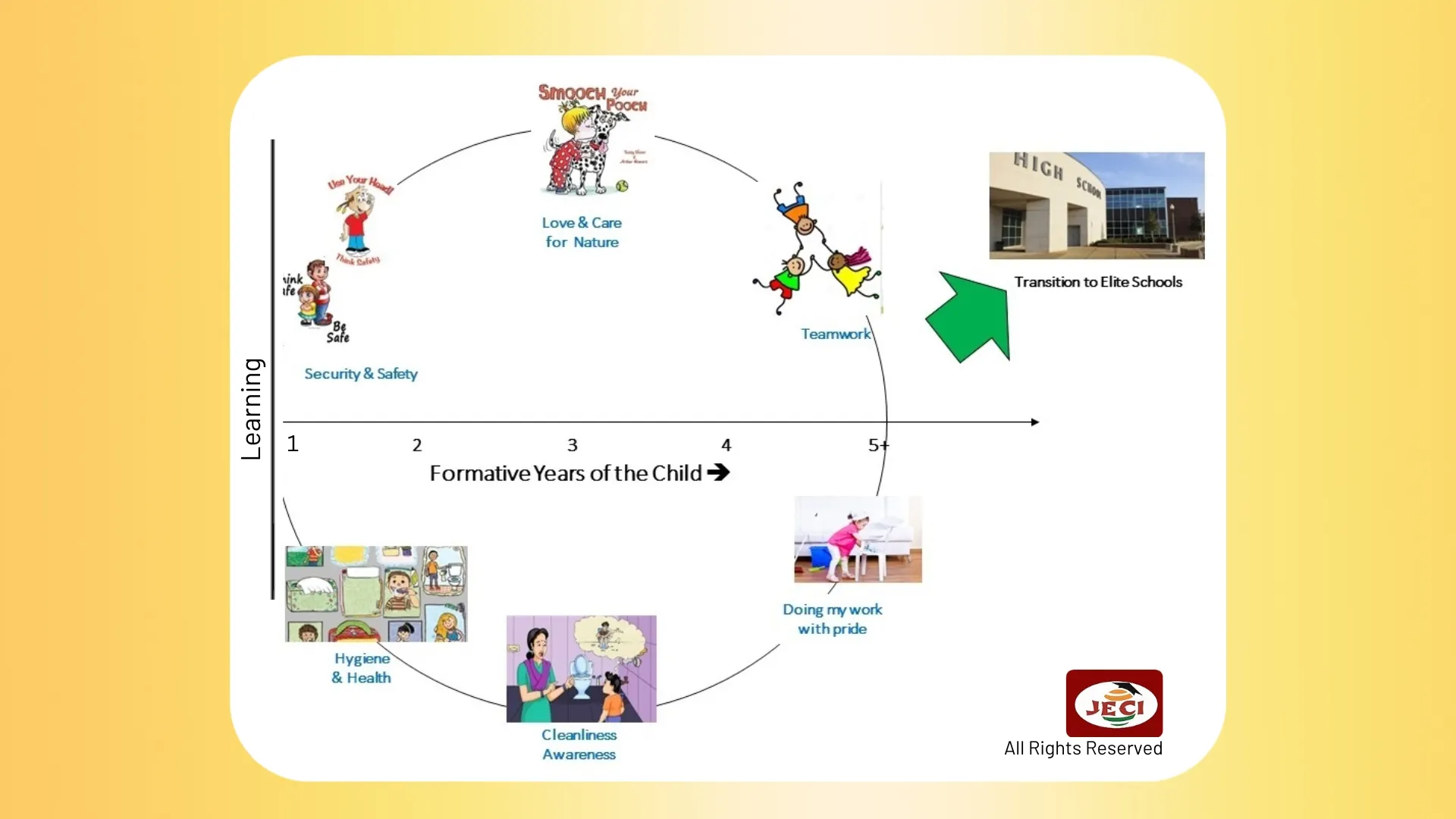 Providing a foundation for children to grasp the knowledge of recognizing the elements that contribute to SWACHHATA (cleanliness), or in other words, “SWAYAM ACHHA,” is essential. JECI’s program, tailored for kindergarten children aged 3 years and above, aligns with India’s Swachh Bharat Abhiyan. It aims to raise awareness and help children identify issues pertaining to the following areas: